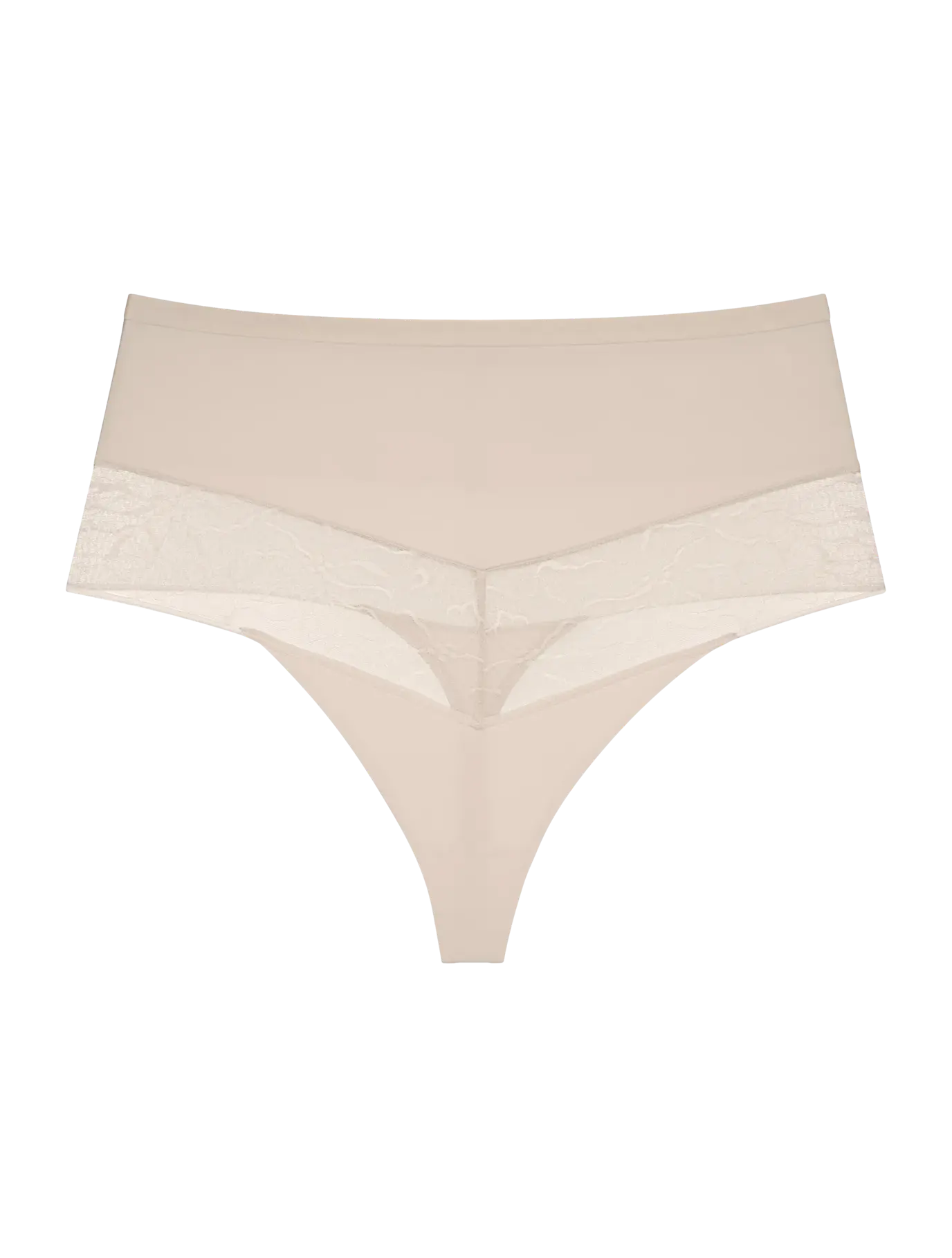 Crafted for an invisible finish beneath your wardrobe, the Comfort Shaping Lace High-waist String delivers light shaping through luxuriously soft fabrics and delicate lace accents. The high-waist silhouette provides enhanced coverage while creating a flawlessly smooth appearance under any outfit. Consciously crafted with at least 50% recycled microfibres.